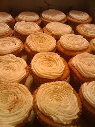 Spiced coconut cake with white rum, topped with a sweetened condensed milk buttercream frosting & cinnamon